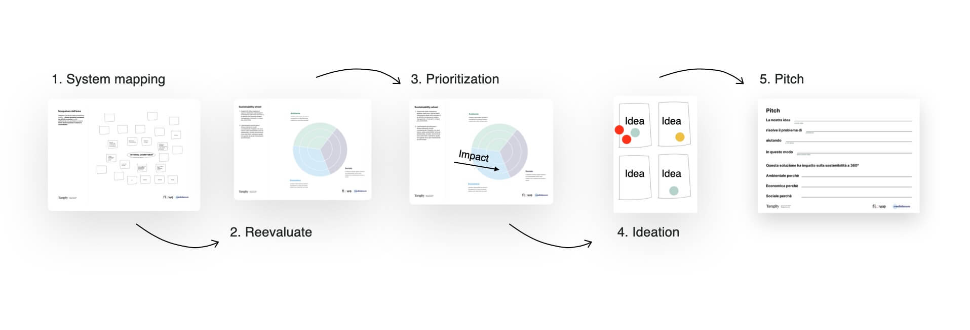 To guide participants through complexity, we structured the workshop around a 5-step process: